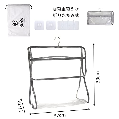 【省スペースと収納便利】吊り下げられるデザインで、省スペース。コンパクトで、使わない時に、折り畳んで場所を取らずに。ウォールポケットが深く大きめで、収納力が抜群、結構入れられる。透明なので、収納されているものを見えやすく、見つけやすく、出し入れも便利です。