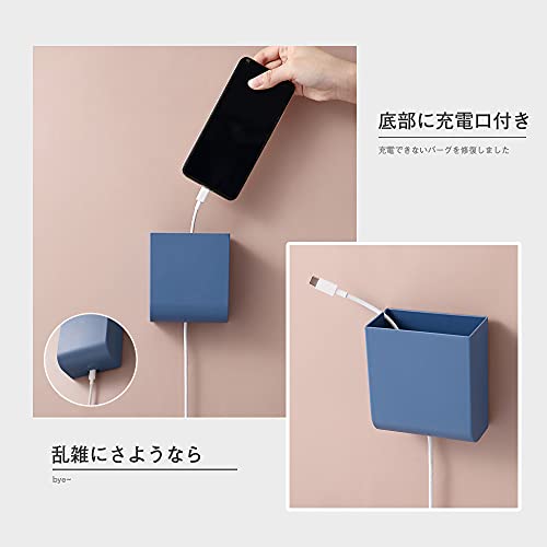 ALLMIRA リモコンラック 壁掛け リモコンホルダー ナノマジックテープ付 充電口付 収納ラック 穴開け不要 収納