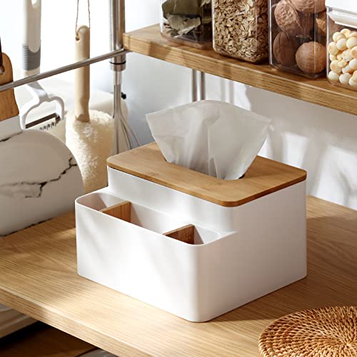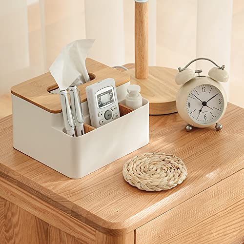 Aduson ティッシュケース リモコンラック 化粧品収納 小物入れ 三格収納 仕切り板取り外し可能 おしゃれ 卓上