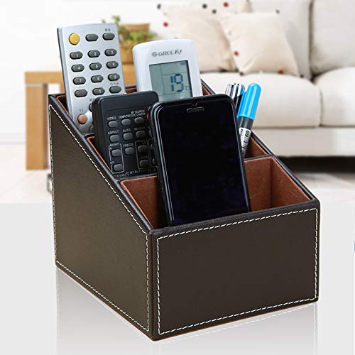 Ansimple 収納ボックス 収納ケース 卓上収納ラック 文具収納 リモコン収納 スマホ 小物入れ 整理ボックス PUレザ