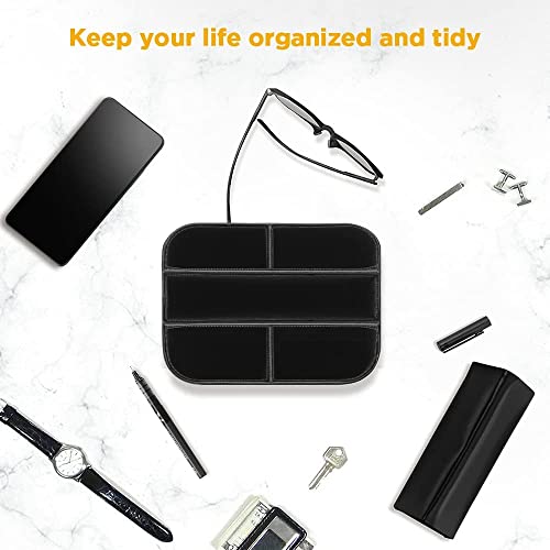 【多機能デスクオーガナイ】5分割の間仕切りで、複数のリモコンを整然と立てかけられる、分厚いリモコンも手前に入れて、とても便利です、リモコン以外にも、ペン立て、メガネスタンド、化粧品収納ボックスなどにも応用が効きます。