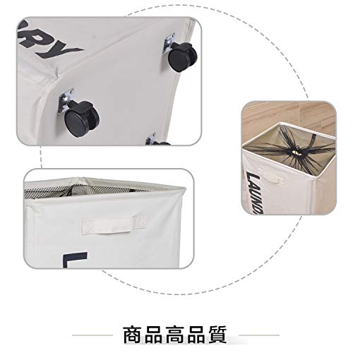 IHOMAGIC 車輪付きの洗濯物バスケット ランドリーかご 洗濯ボックス 収納ボックス 収納バッグ 袋 おしゃれなイ