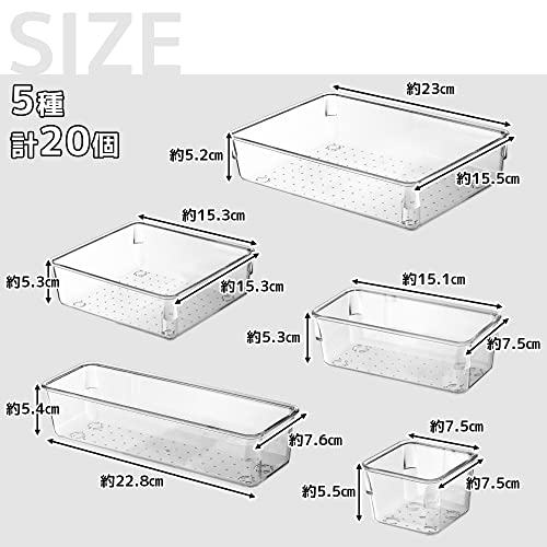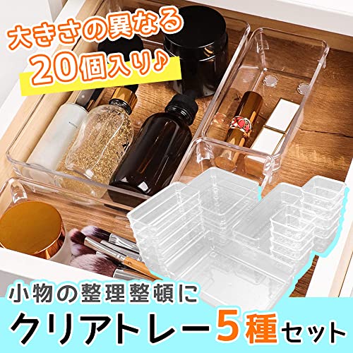 引き出し用トレー 仕切りボックス 20点セット 異なる5サイズ 整理整頓 滑り止め 小物収納 クリア素材