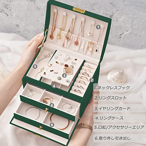 ジュエリーボックス ジュエリー収納ス アクセサリーケース 宝石箱 3層大容量 鍵付き 引き出し 小物入れ ボッ