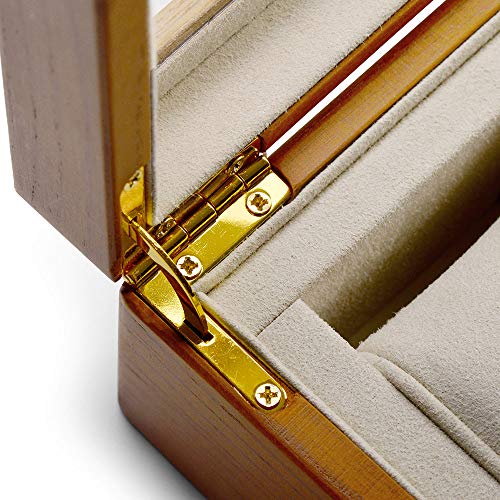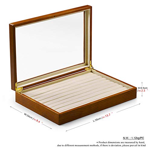 【高品質素材】高品質の無垢材+超繊維+アクリル透明カバーを使用。 アクリルの透明なカバーは、従来の透明なガラスのカバーよりも丈夫で耐久性があり、防塵と宝石の保護の役割を果たすことができます。