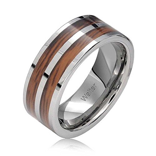 モダンスタイル - ユニークな8MMワイドコンビネーションは、快適フィットシャンク高研磨バンドエッジリング8~12で利用可能なシミュレートウッドとファッショナブルなウェディングバンドリングリングを完成しました。 サイズ13リング