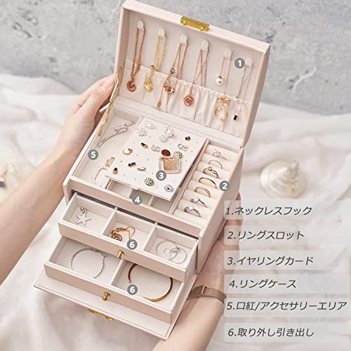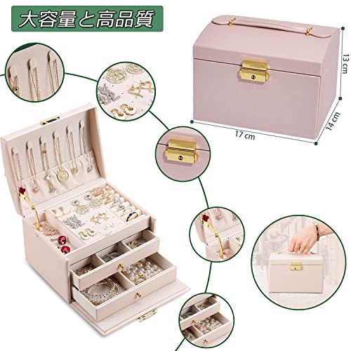 ジュエリーボックス ジュエリー収納ス アクセサリーケース 宝石箱 3層大容量 鍵付き 引き出し 小物入れ ボッ