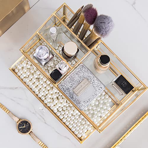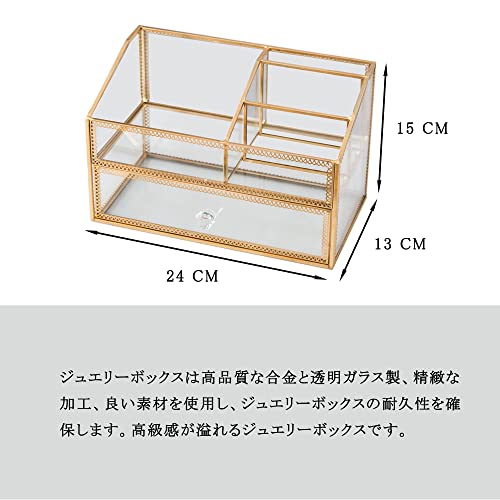 宝石箱ジュエリーボックス2段タイプ。全面ガラス製で金縁のフレームをあしらえた高級感溢れるデザイン。 大切なアクセサリーを大切に守ります。
