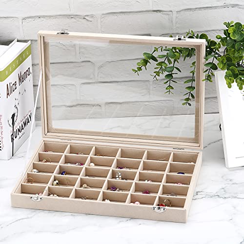 Boewill 30グリッド ジュエリーボックス 宝石箱 ジュエリー収納 ベルベット ピアス収納 ネックレス 指輪置き 大