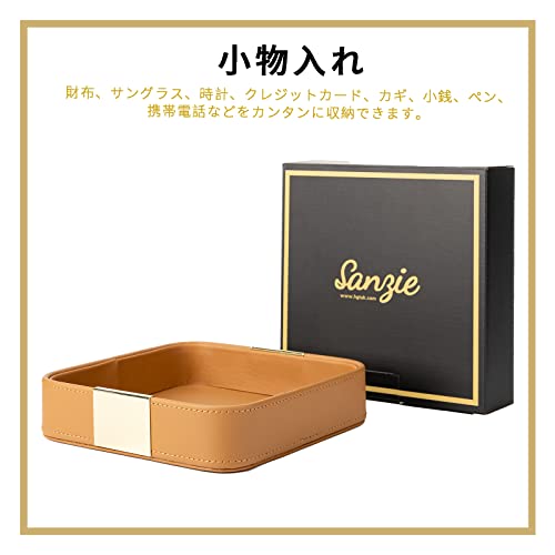 SANZIE レザートレイ 小物入れ 贅沢 革具 アクセサリー収納 頑丈 ジュエリー 化粧品 腕時計 カギ スマホ 財布 卓