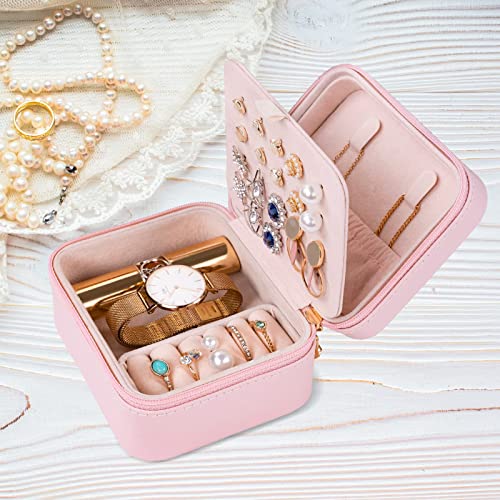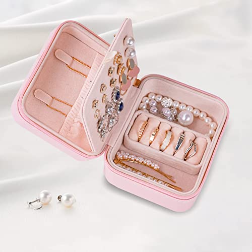 Lolalet 小型ジュエリーボックス 2層 イヤリング 指輪収納 携帯便利 出張 旅行用 -ピンク
