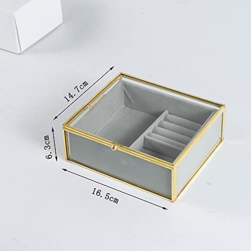 ジュエリーボックスは高品質な合金とガラス製、精緻な加工、良い素材を使用し、ガラスボックスの耐久性を確保します。透明度が高いガラス、透明感純粋な気持ちをイメージしたり綺麗なガラスケースです。