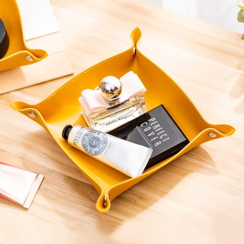 【異なるサイズの2個セット】17cm×17cm×4cmと13cm×13cm×4cm スマホを置いてもまだ置ける余裕もあるサイズで、鍵、腕時計、アクセサリー、ペン、メガネ、小銭など入れも一緒に置いておくことができます。身の回りの小物をひとまとめにできるので、物の定位置を決めて散らかりがちな机周りをスッキリすることができ、一目瞭然で、忙しい朝に探す手間がはぶけます。
