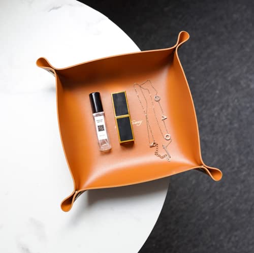 【小物をおしゃれに収納 】ナチュラルな質感のPUレザートレイです。この小物入れボックスはおしゃれなインテリア雑貨として、 リビングに置いてリモコンやスマホを入れたり、卓上、鏡台、洗面所、玄関に置いて外出時に必要な小物をまとめたり、多彩な使い方が可能です。ちょこっとした物の置き場所として使える万能アイ