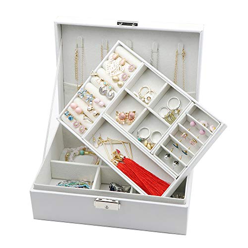 【収納力バツグン】:2段構造のコンパクト設計は、ジュエリー・アクセサリー(ネックレス・指輪・ブレスレット・ピアス・フープピアス・イヤリング・ペンダントトップ・ヘアアクセサリー・腕時計・サングラス)等が一つまとまってしっかり収納可能です。