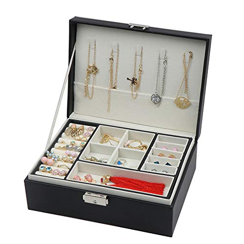 【収納力バツグン】:2段構造のコンパクト設計は、ジュエリー・アクセサリー(ネックレス・指輪・ブレスレット・ピアス・フープピアス・イヤリング・ペンダントトップ・ヘアアクセサリー・腕時計・サングラス)等が一つまとまってしっかり収納可能です。