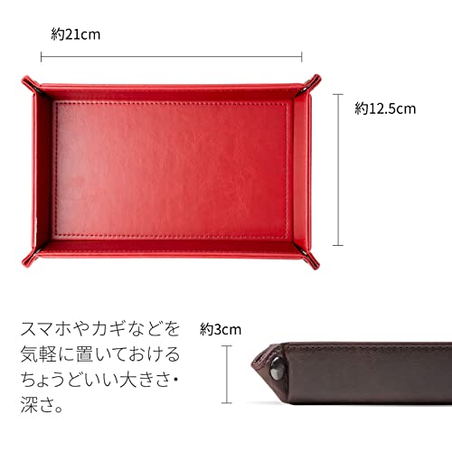 鍵や、アクセサリー、コイン、デジタル小物機器など散らばってしまいがちな小さな貴重品を一手に整頓しておく。 リビング、玄関、ベットサイド、デスク、書斎などどこにでも馴染む、高級な質感のPUレザーを使用。