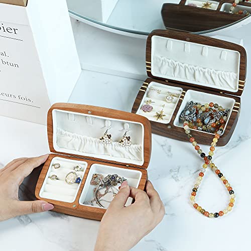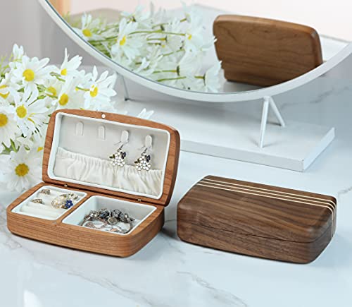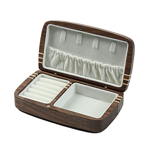 Larmoon ジュエリーボックス 木製 収納ボックス 旅行 ポータブルハンドスタッドピアスジュエリーリング 蓋付 (