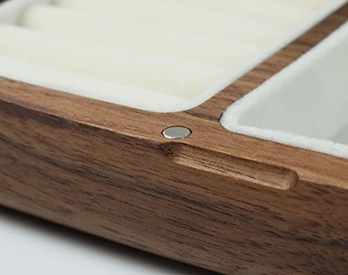 材質:天然ウォールナット/ブナ/メープル無垢材, 柔らかいベルベットの裏地を採用して、ジュエリーに優しいです。磁石ボタン