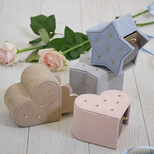 表面はやわらかな質感のスウェード調生地に、金属のスタッズを散りばめました。 お気に入りのリング、小さめのピアスの収納にどうぞ。 側面の金属のつまみを引くと、星から月の形のリング挿しが現れます。