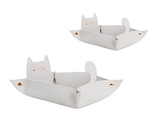 DecentGadget 2枚セット 収納トレー レザー 猫 卓上収納 ジュエリーボックス 小物入れ 革 アクセサリー 鍵 腕時計