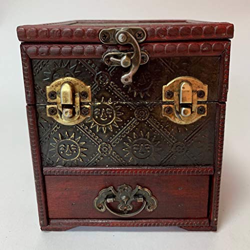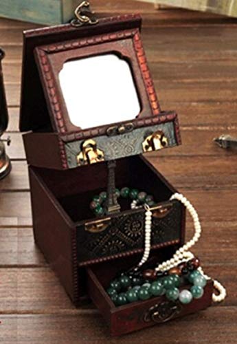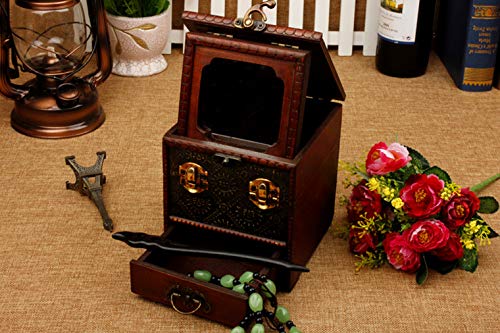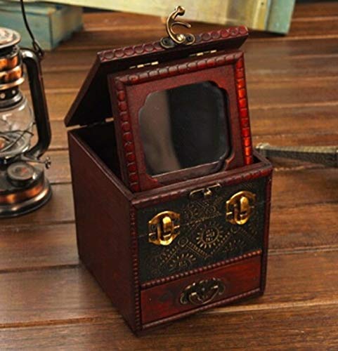 Anberotta ジュエリーボックス コスメ メイクボックス 小物入れ 化粧品 ミラー 鏡付き 木製 アンティーク調 ケー