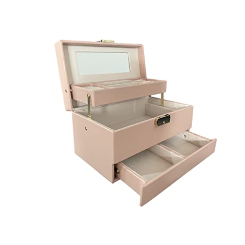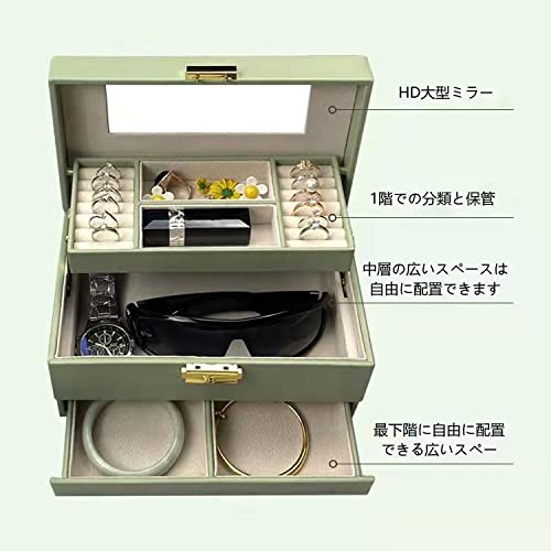 EZ PEACH ジュエリーボックス 大容量 アクセサリーボックス 鍵付き3層 引き出し2段 宝石箱 指輪 ネックレス収納