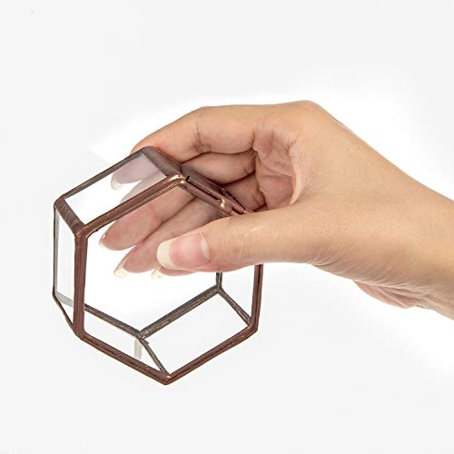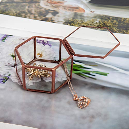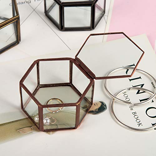 Feyarl ジュエリーボックス ジュエリー入れ 宝石箱 ジュエリー収納 ガラスボックス リングピロー 7.5cm 六角形