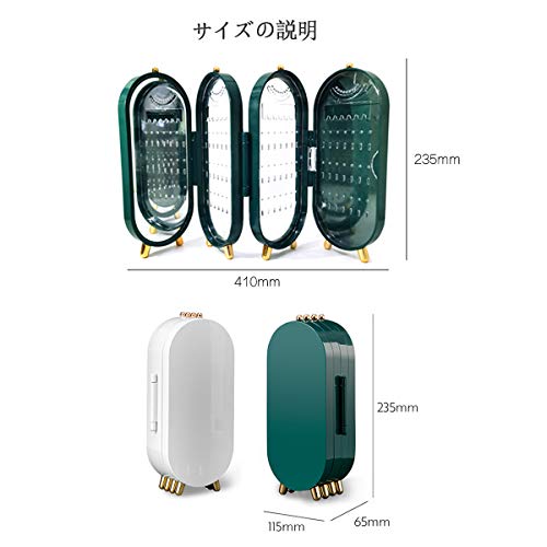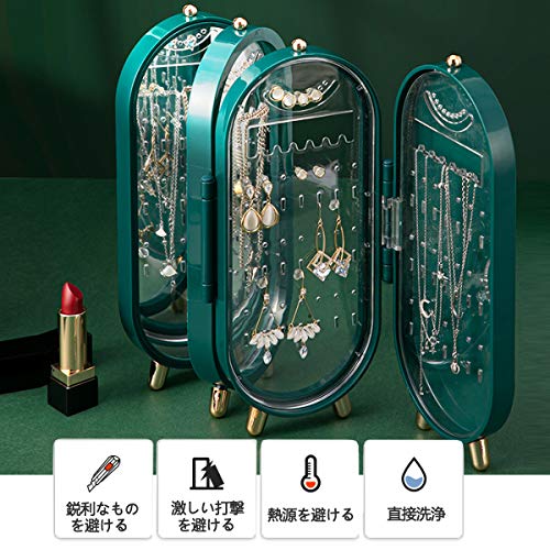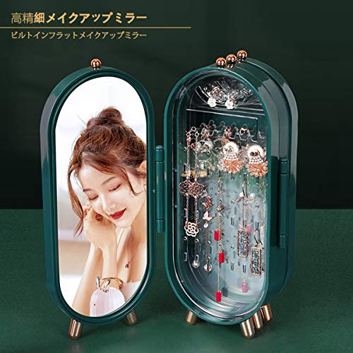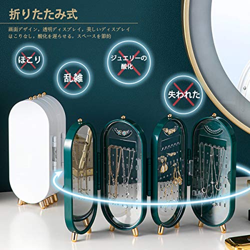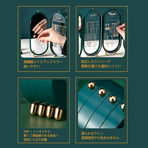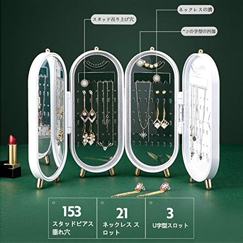 【大容量ジュエリーボックス】4枚のパネルジュエリーボックス153のイヤリング受信ポイント、21の頸溝、3つのU字型の溝があります。ミラーが付属しています。プラスチック製のバックルが各パネルを接続し、自由に組み立てることができます。この折りたたみ式イヤリングチェーンディスプレイスタンドを使用すると、保管スペースを節約し、すっきりとしたドレッシングテーブルを取り戻すことができます。