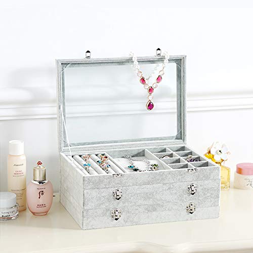 【ガラス蓋】透明の蓋なので、中身が見えてインテリアとしても最適です! いつでもおしゃれアクセサリーを探すことができます。