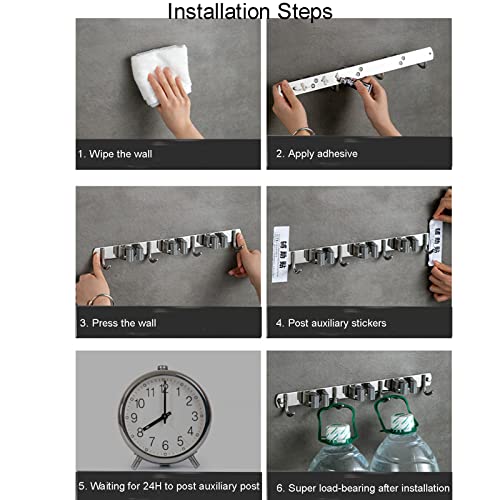 AMOSKAMAR モップ掛け フック3位置4フック壁掛けスタンドモップ収納ラックトイレ用多機能フック