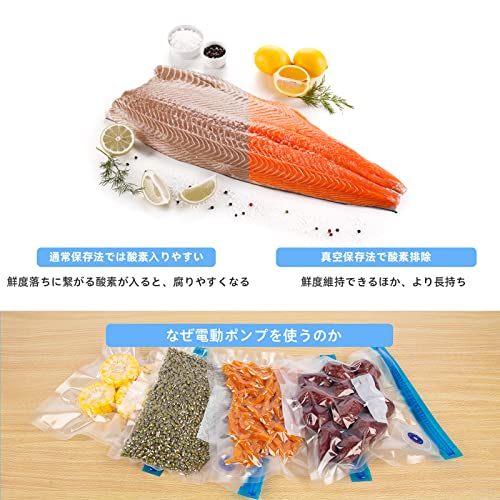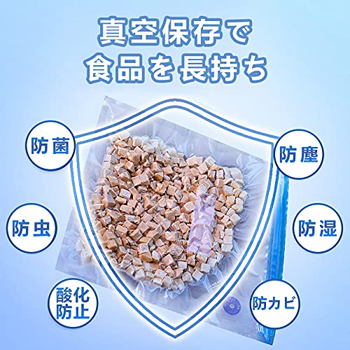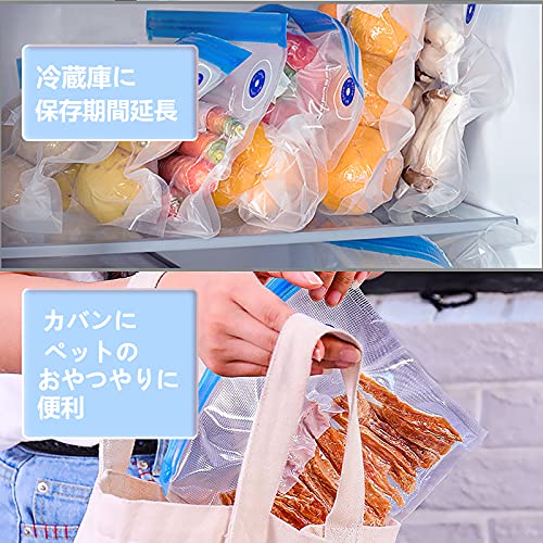 ?【強い密閉性】専用密封袋が作った真空状態により、食品の腐敗、酸化、変質などを防げ、食品の保存に最大限の便利さをご提供できます。本製品は、食品の新鮮度を3~5倍に延長し、食物の元の味と色を保留することができます。新しいバルブ、電動ポンプと合わせてより楽に真空パックができる。ご注意:バルブ部分を破れたり、剥がしたりしないでください。真空できない恐れがあります。