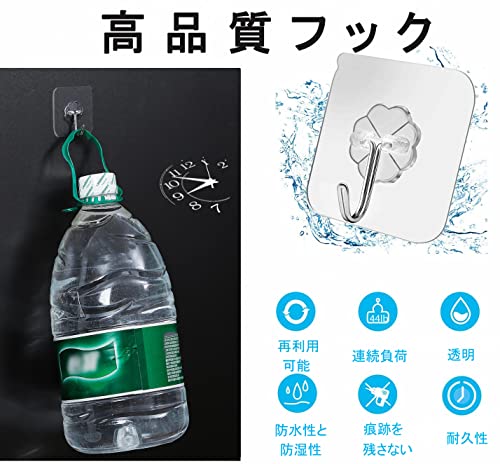 | 商品名 | 壁掛けフック 透明フック 粘着フック 強力フック 壁フック 15枚セット 耐荷重20KG 傷つけない 貼り付け跡なし |