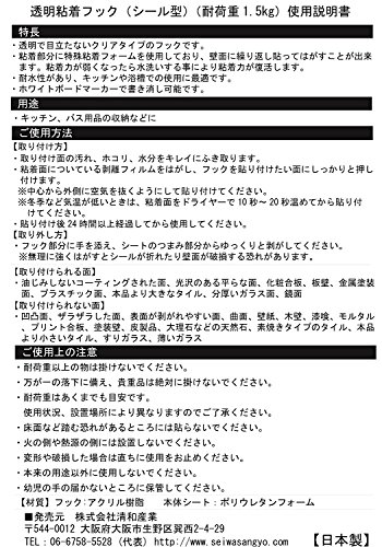 | 商品名 | 10個入 クリア粘着フック 耐荷重1.5kg 目立たないクリアタイプ 糊残りしない 強力 (シール型) |