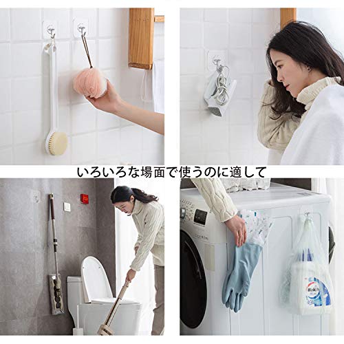 粘着 フック 壁掛けフック 垂直耐荷重30kg 透明フック 強力 多機能 キッチン用 オフィス用 浴室 貼り付け跡が