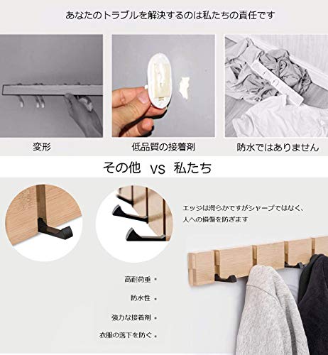 【耐久性の高い素材 】壁掛けフック100%天然竹を作られての、自然で環境に優しい。フック部(亜鉛合金)、変形しにくく、長持ちでき、湿度の高い天候でも外観に影響を与えず