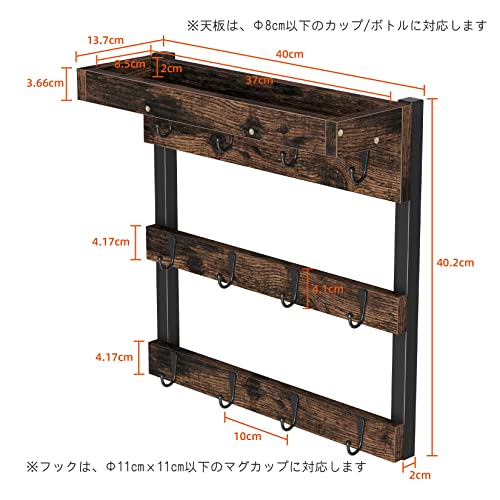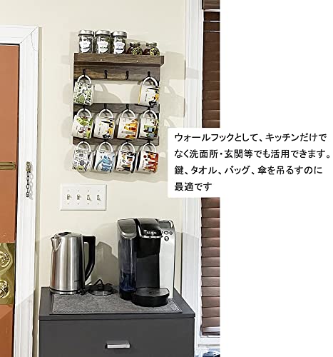 ウォールシェルフ コーヒーマグカップ収納ラック 壁付け キーフック ウォールフック 鍵収納 壁掛け コーヒー