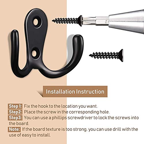 使いやすさ:各ブラックのダブルローブフックは非常に簡単に取り付けることができます。 まず、フックを取り付ける必要のある位置を見つけ、フックを対応する位置に移動して2本のネジのいずれかで固定し、最後に位置を調整してもう一方のネジを固定します。