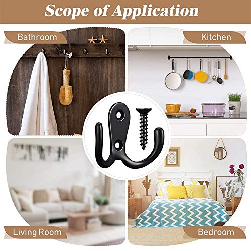 幅広い用途:ダブルプロングのローブコートフックは、ベッドルーム、ワードローブ、キッチン、バスルーム、リビングルームだけでなく、倉庫、地下室、ドアなどにも適しています。彼らは服、帽子、スカーフ、バックパック、傘または他のアイテムを掛けることができます。あなたの人生に便利