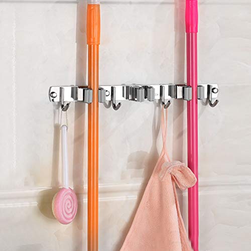 xuuyuu モップホルダー 壁掛け ほうきホルダー 壁掛けホルダー 3位4鈎 収納式多機能フック 掃除ツール モップ収
