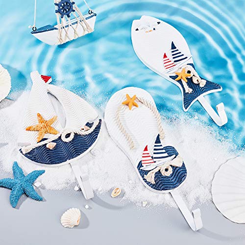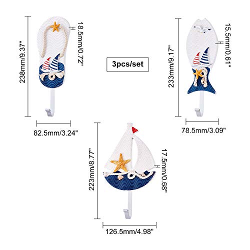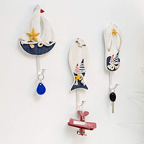SUPERFINDINGS 3ピース 地中海スタイルコートフック ウォールハンガー 地中海風壁掛けフック 木製航海帽子服ホー