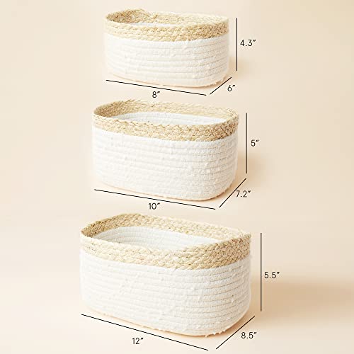 LA JOLIE MUSE 収納バスケット カゴ 北欧 3点セット ロープ 小型 ホワイト 装飾 入れ物 赤ちゃん おもちゃ 子育て