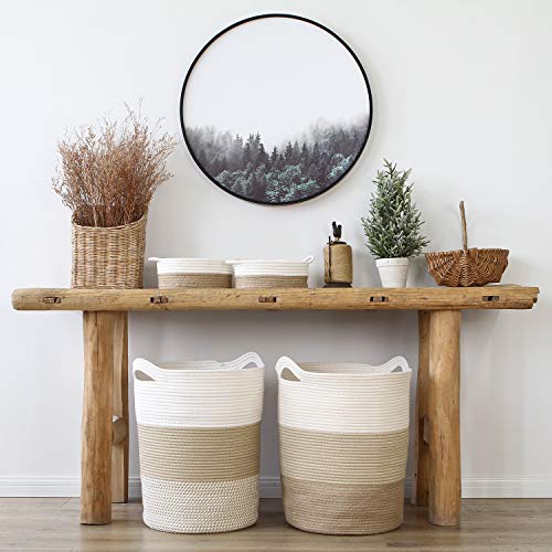 Sea Team 収納バスケット 収納かご 収納ボックス ロープバスケット 持ち手付き ランドリー ナチュラル 赤ち