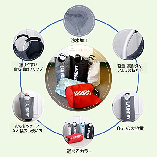 【高い収納力】:最大容量が86Lと非常に大きく、大量の衣類を入れての持ち運びが可能となっております、見た目もシンプルな作りになっており、コインランドリーへの持ち込み等にも最適です。自宅などでの脱衣所や洗濯機周りに使用する際にも便利なサイズ感となっています。