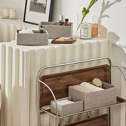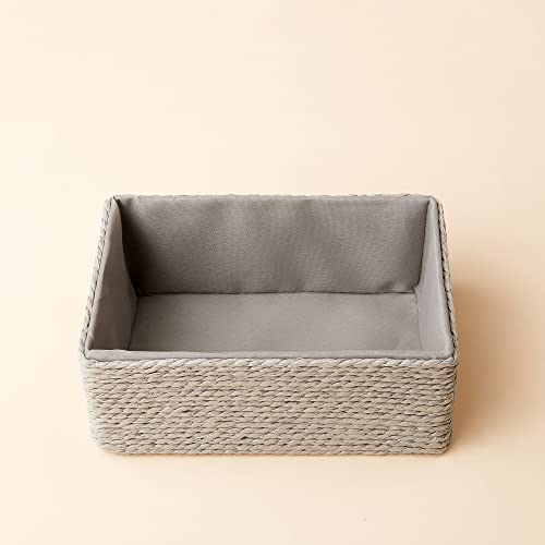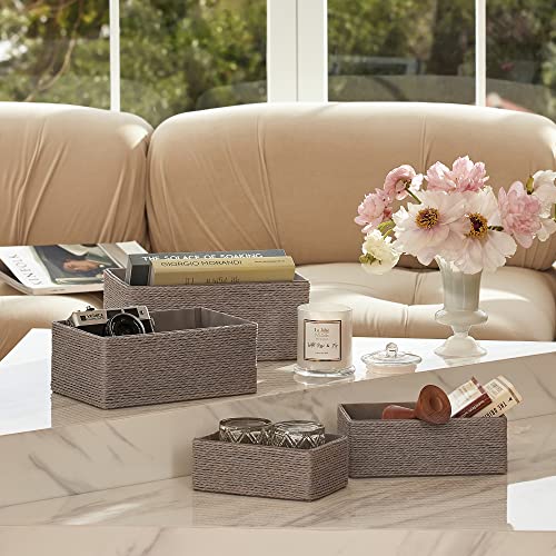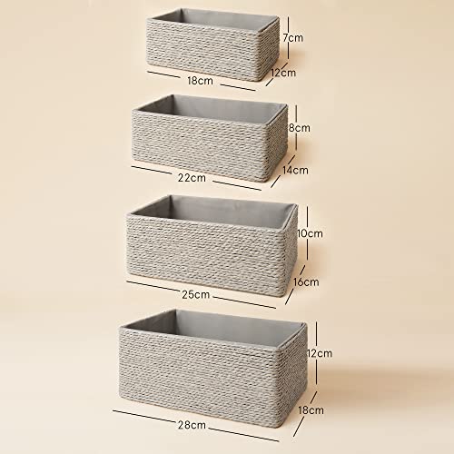LA JOLIE MUSE 収納バスケット 収納ボックス 4個セット 裏地付き 紙紐編み 積み重ね可能 多目的収納容器 (グレー2)