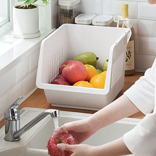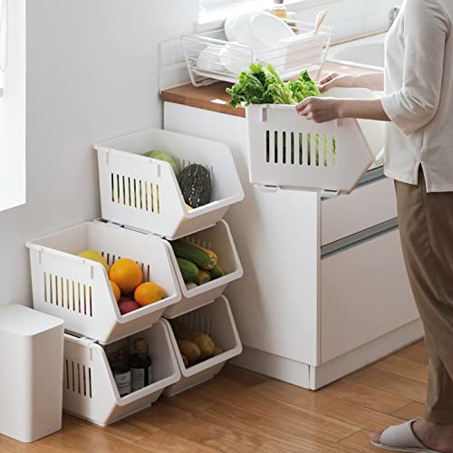 O&K 収納バスケット 隙間収納 2個/セット 積み重ね 安定 頑丈 キッチン リビング 脱衣所 浴室 ランドリー 果物/