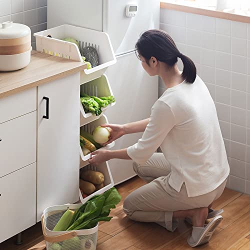 【優れたデザイン】弊店の隙間収納かごは安定性を保障するために頂部の溝口、底部に固定用なロックを設置していますので、高く積み重ねても崩れることはありません。また、スリムな構造は積み重ねの設計