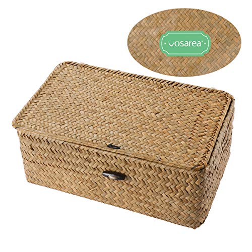 Vosarea 収納ケース 編まれた 天然素材 フタ付き かご 収納 バスケット 長方形 M