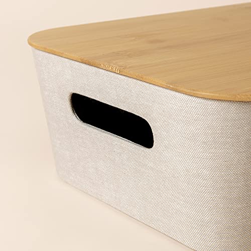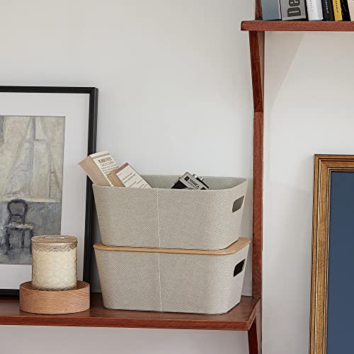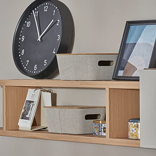 LA JOLIE MUSE 収納ブックス バスケット 2個セット 竹蓋付き ミッドセンチュリーモダン お洒落 ツイード生地 棚