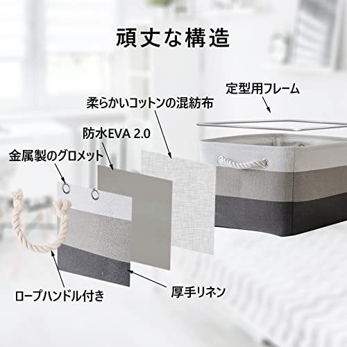 【優良な材質】TcaFmac折り畳み式収納バスケットは3層構造で作られています。外側は環境にやさしい天然綿麻素材です。芯材はEVAを使っており、防水防湿ができます。口側にフレームワークがつけており、形を保ち、支えなくても、自身が立てられます。両側に太めの綿ロープハンドル設計し、手触りが優しくて、取り出しが便利です。素晴らしい製作技法と生地感で使いやすいです。